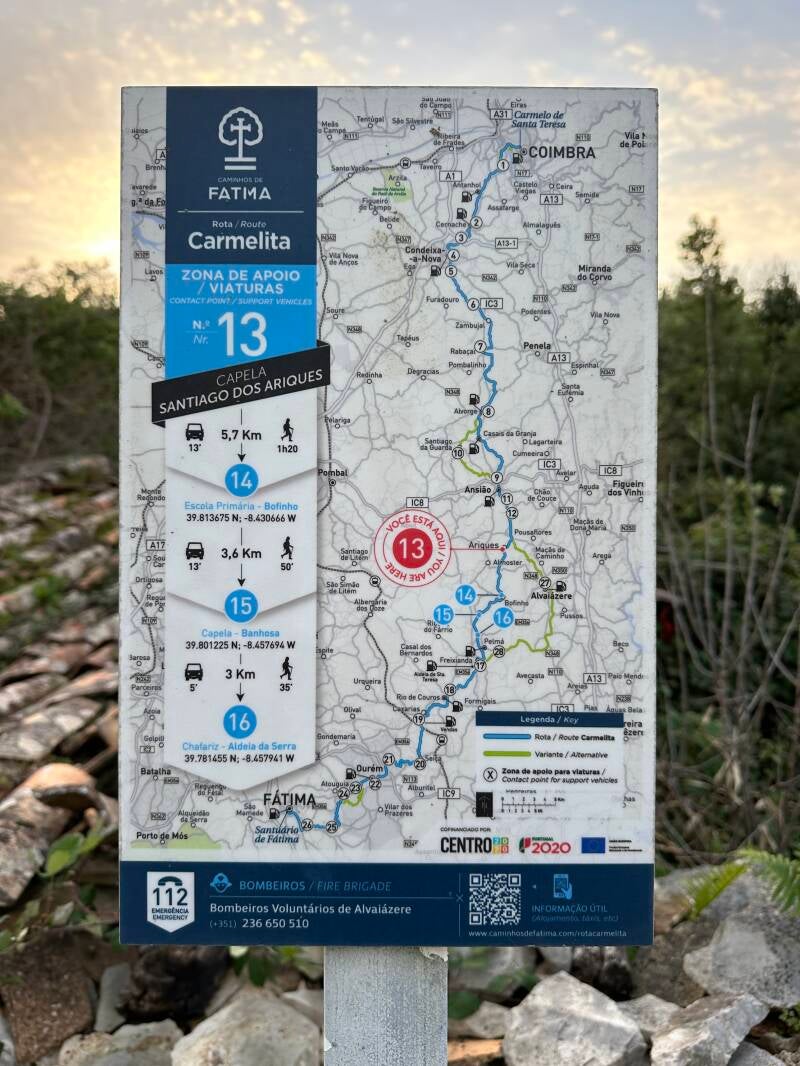 Wat ik zo bijzonder vind is dat de Rota Carmelita letterlijk door het dorpje loopt. Deze route, die pelgrims van het heiligdom in Fátima naar het historische Coimbra leidt is een tocht van ruim 100 kilometer door glooiende heuvels, bossen en kleine dorpjes. Het is een route die niet alleen landschappen verbindt, maar ook mensen met hun gedachten, dromen en vragen.